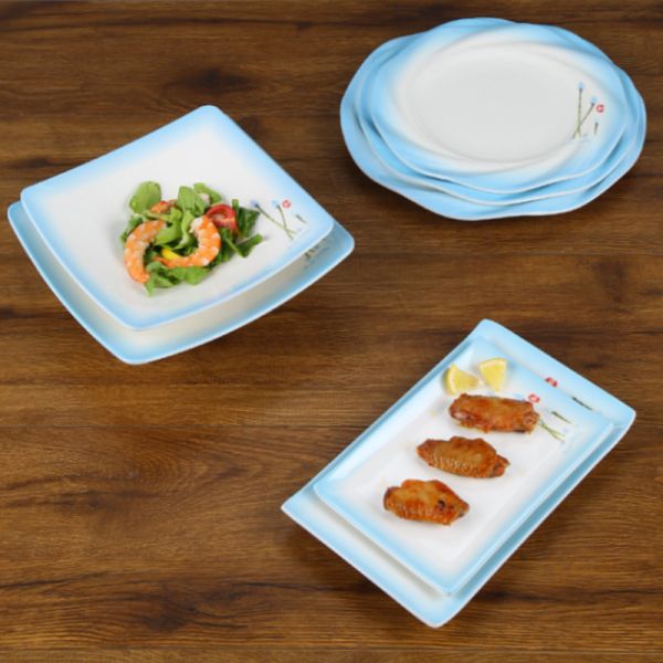 Blue Melamine Dinner Plates With Pattern In Two Colors Dishware Safe Ceramic Finish Images |